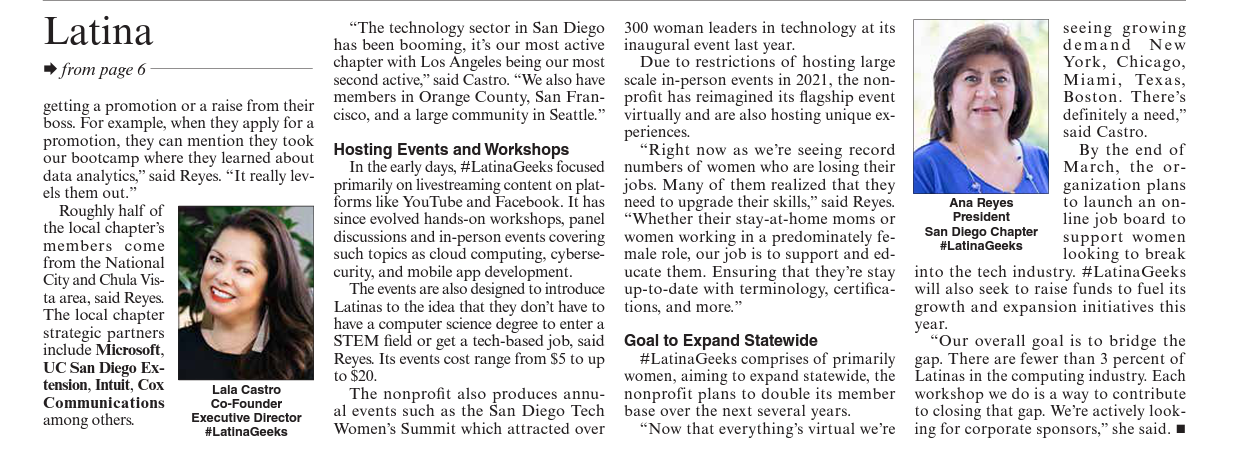 Ana Reyes, president at the #LatinaGeeks San Diego Chapter, said the local organization which is out of a broader Southern California chapter, adding that it has a distinct San Diego character attracting determined women throughout the region.