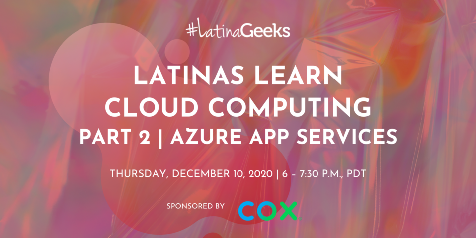 #LatinaGeeks is proud to partner with Cox Communications to delve into the valuable knowledge of Web App Services within Cloud Computing. This will be part two of a 2-part series containing a workshop with an interactive Q&A