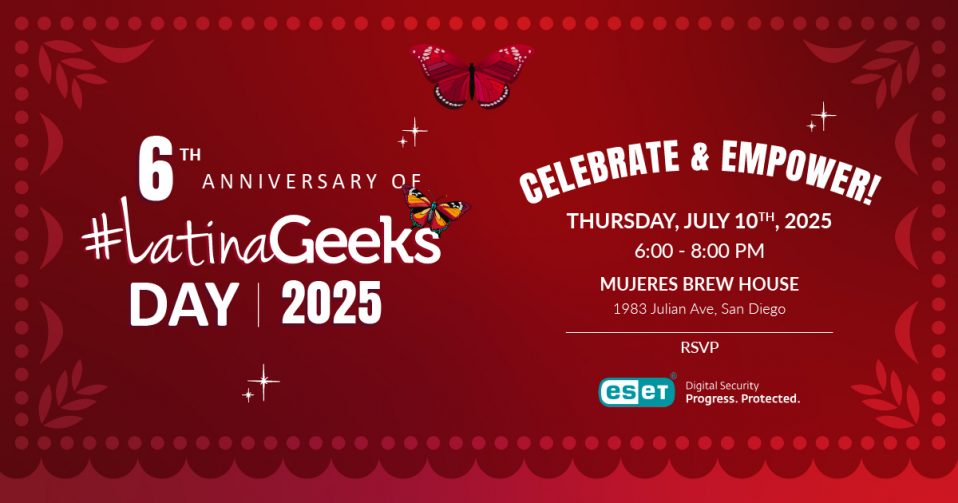 Get ready to celebrate! The annual #LatinaGeeks Day is back for its 6th year, and this year, we’re turning up the energy with our partners at ESET at the vibrant, Latina-owned Mujeres Brew House. Officially recognized by the City of San Diego since 2019, this event honors the powerful impact of the San Diego #LatinaGeeks community and all our incredible members, allies, and partners!