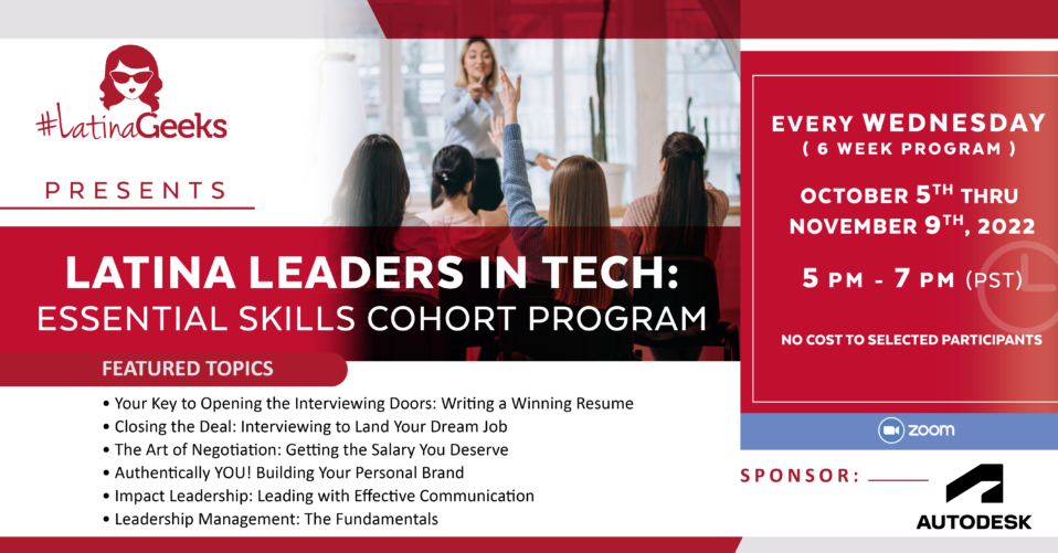 #LatinaGeeks has launched a 6-week cohort program designed for Latinas ready to develop their skills, build community and become a catalyst for change in the tech industry. The program will provide selected participants with an immersive experience where attendees understand what they bring to the tech industry and learn key fundamental skills that are in demand as they navigate their careers.