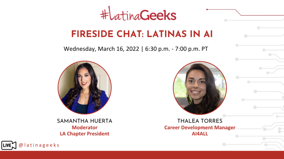 Amigas, save the date for our next IG Live! We invite you to listen & participate in a powerful conversation addressing why there is a need for Latinas/POC in the Artificial Intelligence Industry. We will discuss the lack of representation and effects on the industry as well as how Latinas can start their journeys to AI which includes the skills needed as well as titles.