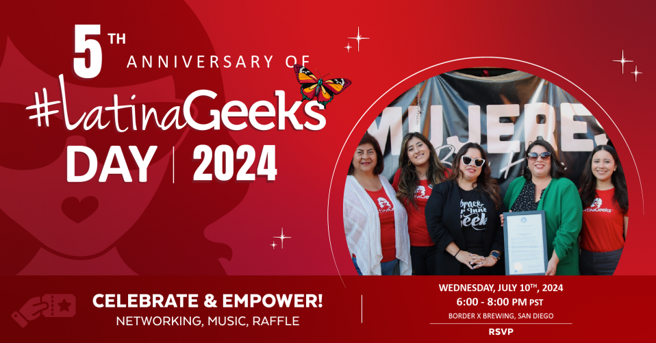 Celebrate the 5th Anniversary of #LatinaGeeks Day with us! Officially recognized by the City of San Diego in 2019, this event honors our organization’s impactful contributions and our vibrant community of Latinas and allies.